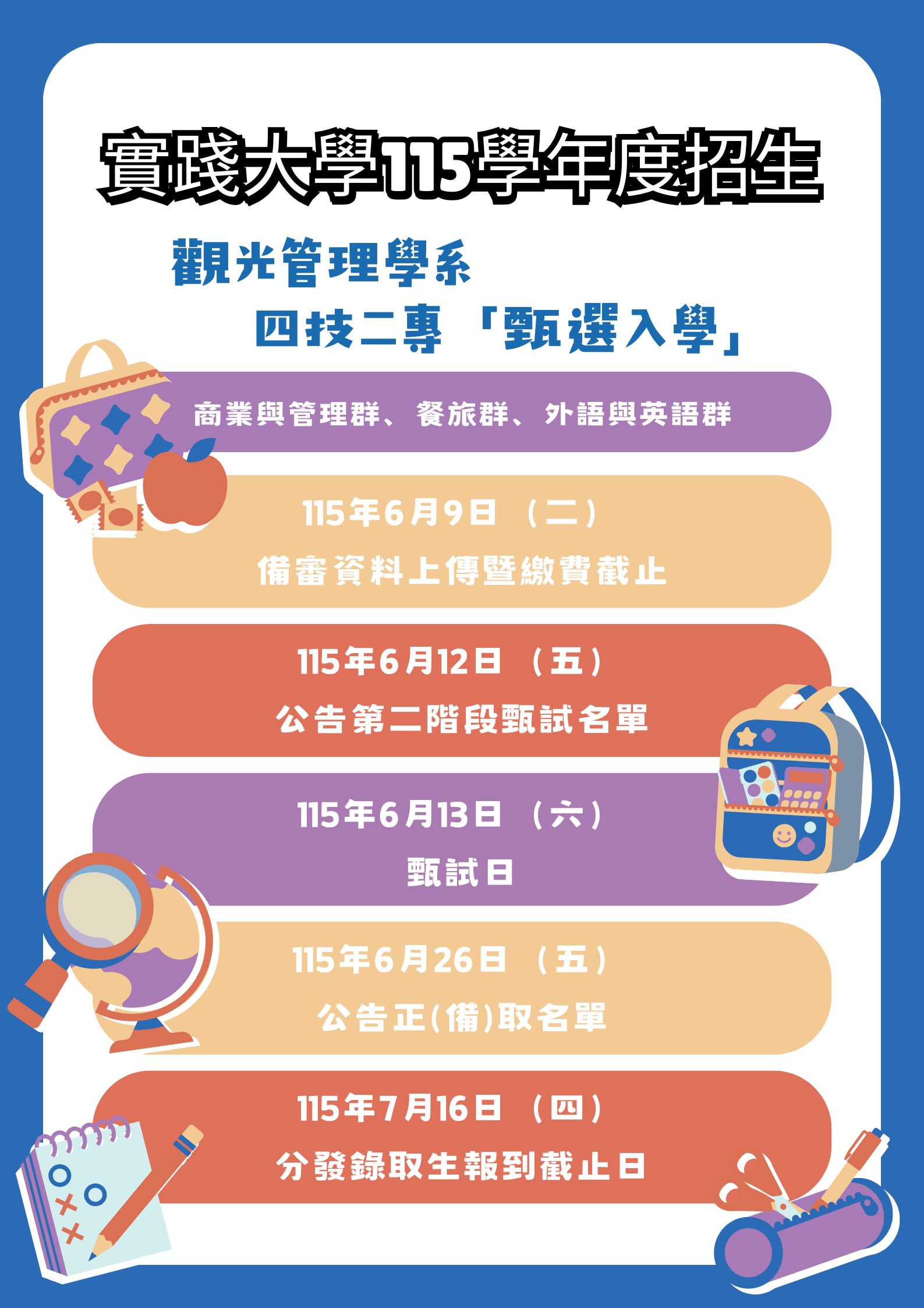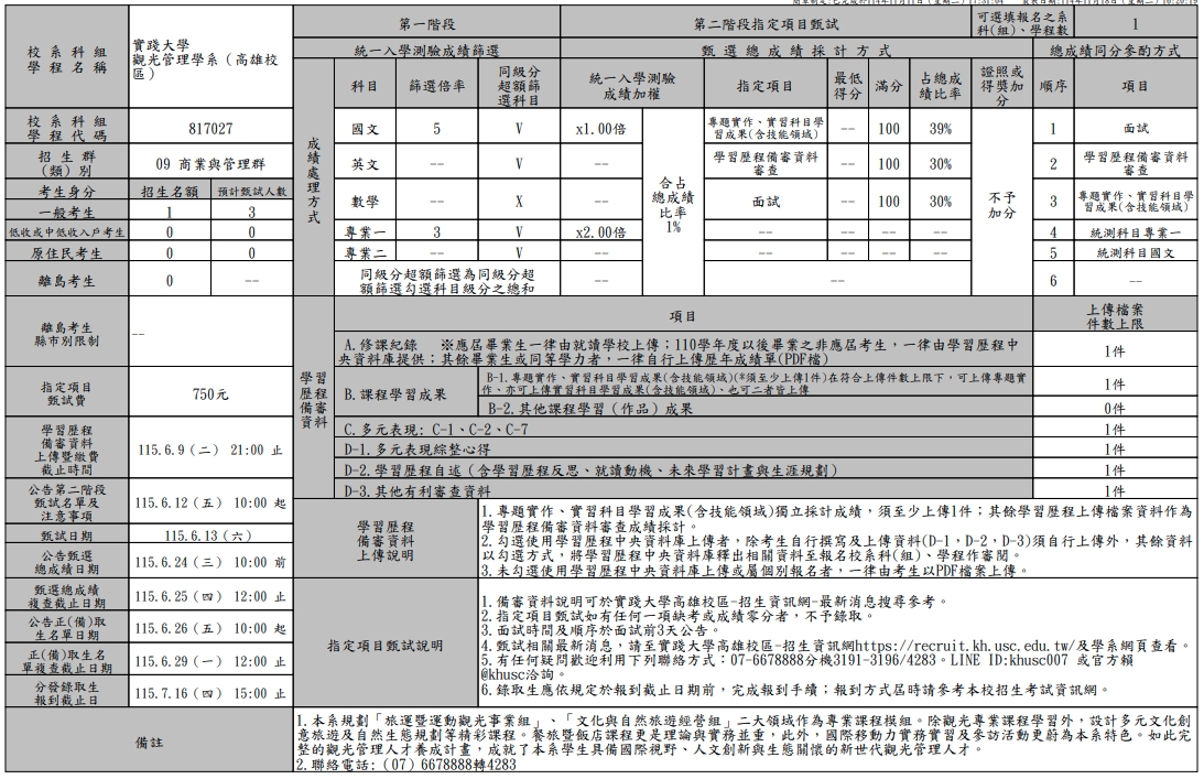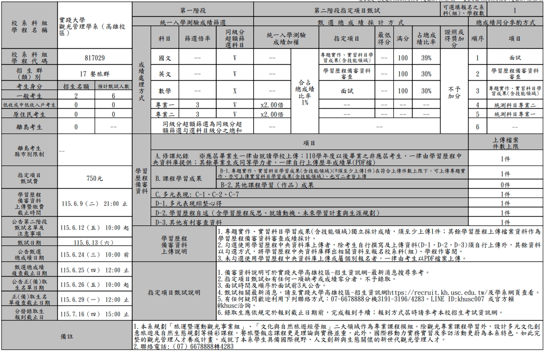 【2026】【四技二專】實踐大學四技二專甄審入學採計學科及名額