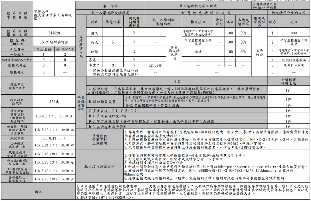 申請入學校系分則查詢:https://recruit.usc.edu.tw/?p=4012